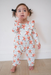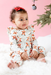 Our Mabel Romper features a ruffled detail in front and back, long sleeves and snap closures around the inside legs for easy diaper changes.