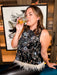 Shimmer + Shine Top Get ready to dazzle in this playful festive essential! This eye-catching top features shimmering sparkles that catch the light from every angle, paired with delicate feather trim that adds movement and whimsy. Perfect for holiday parties, celebrations, or whenever you want to bring extra glamour to your look. The fun, festive vibe makes it an instant crowd-pleaser that'll have everyone asking where you got it!