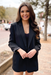 Model looked so great pairing this top with the brown mini that I bought the same combo, and it's STUNNING together. I was worried the top might look too big as I'm an XS, but the flow and drape are just beautiful, and it gives enough "billowy" to balance the short form-fitting skirt. Love both!