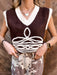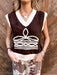 Elevate your wardrobe with this adorable knit sweater vest, designed to echo authentic western flair. Featuring a bold ivory rope crown embroidery across the chest, this two-tone brown and ivory vest is crafted from a cozy, breathable knit that’s soft to the touch and perfect for layering. The classic v-neckline and armholes are trimmed in ribbed ivory knit for a clean finish that keeps its shape. Whether styled with jeans for a day at the rodeo or layered over a button-down for fall festivals, this vest blends comfort and cowboy charm.