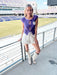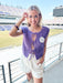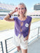 Get ready for game day in this playful, light sweater featuring a bold purple hue and a fun tie-front detail. Its cute design adds a splash of color and a touch of flair, perfect for cheering on your team in style and comfort.