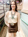 Styled with the Pearly Gate Top, Fort Worth Belt Buckle, Mountain Compass Necklace, and High Cotton Boot.
