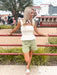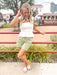 Styled with the Summer Garden Scarf, Smile Pocket Denim Short, and Lasso Sandal.
