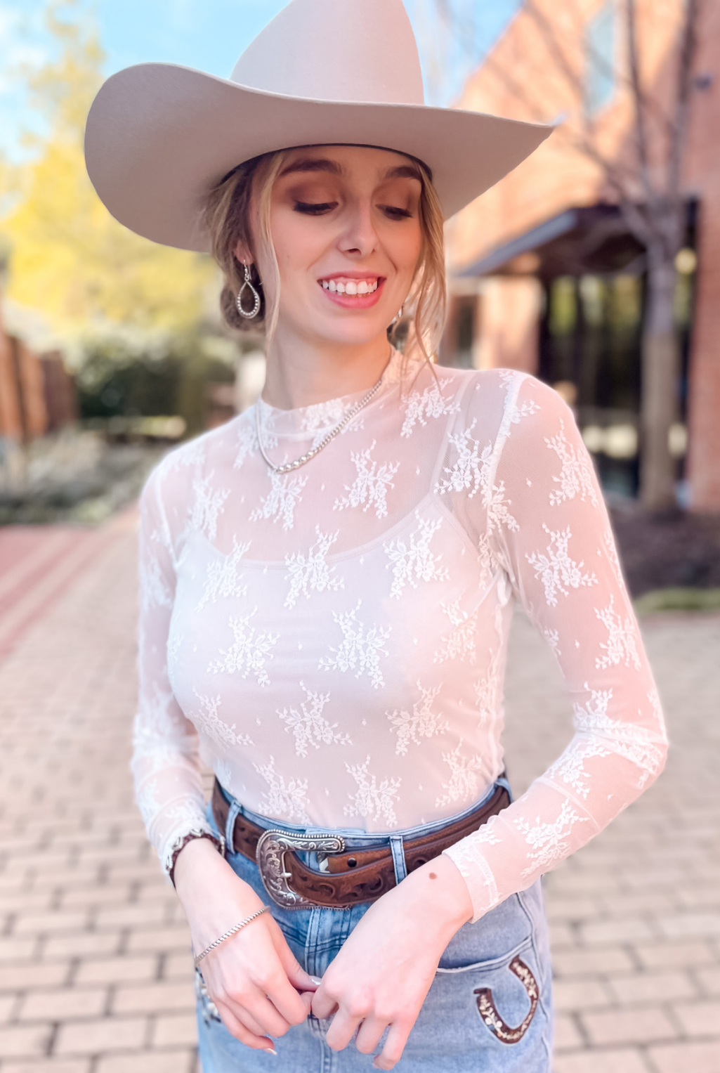 The Haven Lace Top is the perfect chic addition to any outfit. It's the perfect layering piece, adding just the right amount of edge to any look. Wear it under our vests and leather shorts for a killer nighttime look.