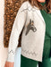 Wrap yourself in cozy style with this charming cardigan, designed with a standout woven horse motif and bold ribbed trim. Crafted from a soft wool blend, it delivers both warmth and comfort for chilly days. The shawl collar and front pockets enhance its cozy appeal while offering practical functionality. With its relaxed, slightly oversized fit and dropped shoulders, this cardigan is perfect for effortless layering over tees, blouses, or dresses.