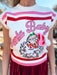 Celebrate the holiday season in cozy style with the Queen Of Sparkles: Santa Baby Fuzzy Santa Short Sleeve Sweater. Featuring cheerful red, pink, and white stripes, this soft, fuzzy sweater adds festive flair to any outfit. Its short sleeves make it perfect for layering or wearing on milder winter days, ensuring you stay comfortable while spreading holiday cheer. Embrace warmth and playful charm in one unique sweater designed to make you the star of every holiday gathering.