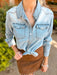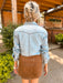 Introducing our Tie Front Denim Shirt - perfect for a classic, timeless look. This crop top is lightweight and can be easily paired with our fringe skirts or leather shorts. Complete the look with some fun jewelry. (Go ahead, denim-it!) Also available in light denim!